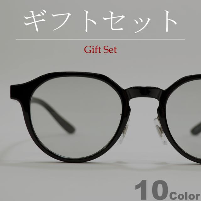 【ギフトセット】 サングラス 伊達メガネ メンズ レディース ボストン ラウンド 丸メガネ クラウンパント ライトカラーレンズ 薄い色 グレー スモーク ブラック ブルー グリーン オリーブ デミ ブラウン クリアーフレーム 全10色
