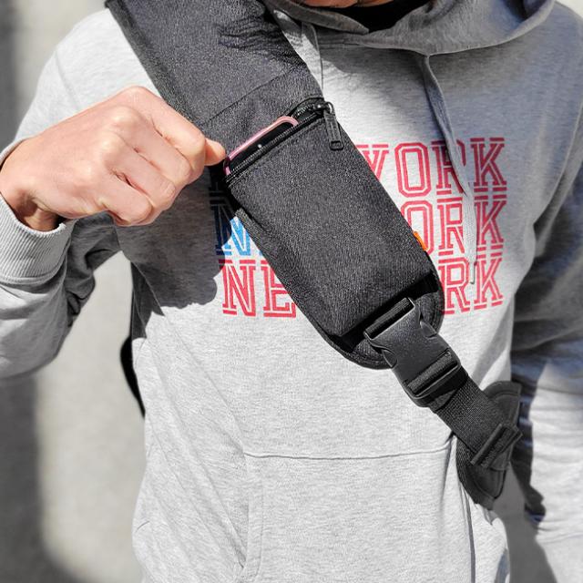 外側:フロントファスナーポケット×2、ストッパー付きポケット×1、スマホポケット×1(ショルダー上部)、カードポケット×1(ショルダー下部)