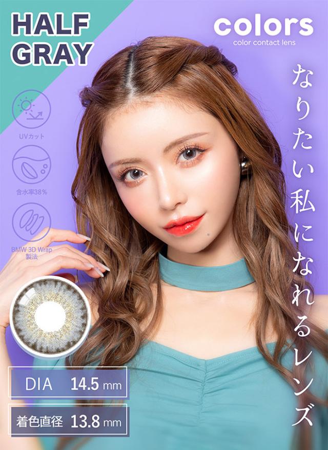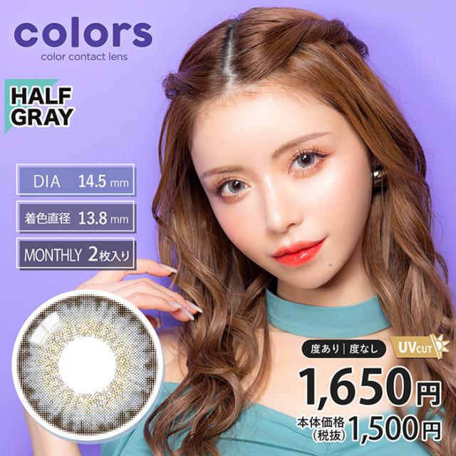 colors(カラーズ) 1month ハーフグレー 度なし 度あり カラコン 1箱2枚 マンスリー 一条響