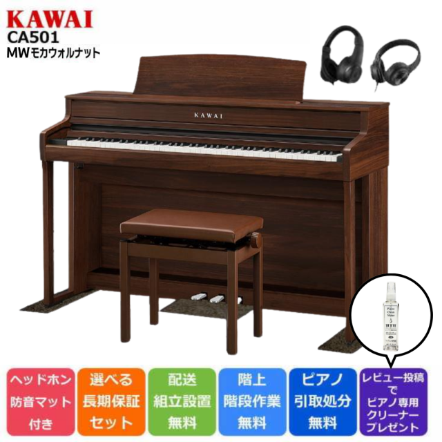 【15,500円OFFクーポン有☆早い者勝ち】KAWAI カワイ DigitalPiano 電子ピアノ 88鍵盤 CA501 MW モカウォルナット調仕上げ 防音/防傷マット &ヘッドホン【CA59後継機種】【配送設置無料 & 不要ピアノ引取処分無料】