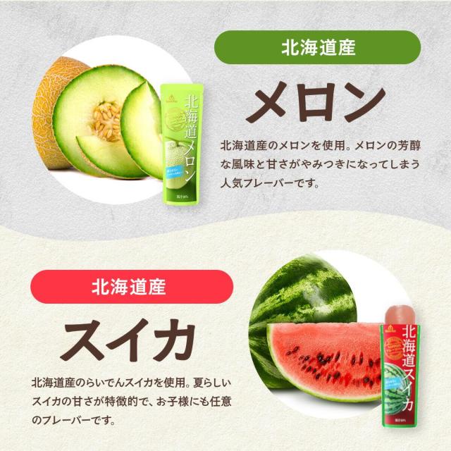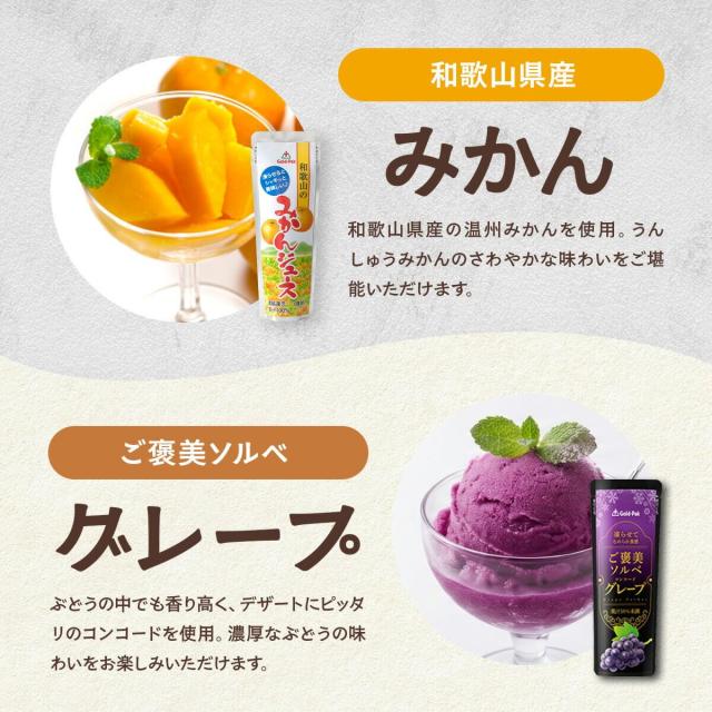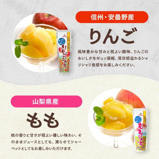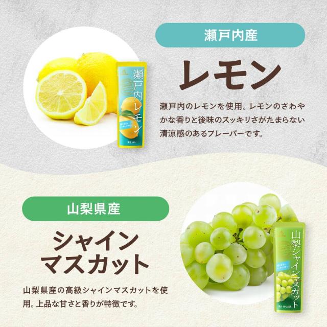 凍らせて食べるアイスシリーズは、常温保管時はアレンジしやすい液体のため、凍らせるだけでなく、ドリンクとしてもお楽しみいただけます♪凍らせても袋ごとモミモミすれば、牛乳などとも混ぜやすくなり、シェイク風のドリンクも作れます。様々なアレンジレシピでお楽しみください!