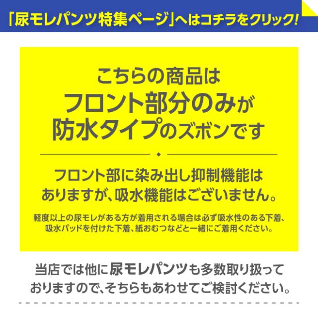 ※本品はフロント部分にのみ防水機能(染み出し抑制)があります。ズボン全体に防水機能があるものではありません。