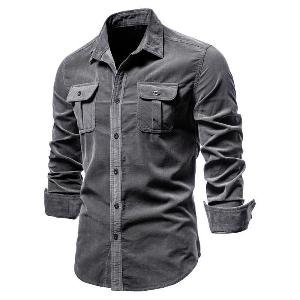 2021 新シングルブレスト綿 100% メンズシャツビジネスカジュアルファッション無地コーデュロイ男性シャツ秋スリムシャツ男性