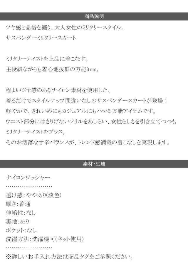 クラシカルエルフ冬新作 ボトムス スカート レディース サスペンダ— ミリタリー ナイロン ナイロンスカート 2way ハイウェスト フリル サスペンダースカート ミリタリーテイスト 甘辛コーデ 2025SS ce1070154