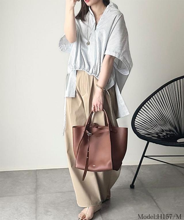 たっぷりの前ドロストデザインが目を引く、大人の抜け感シャツ。