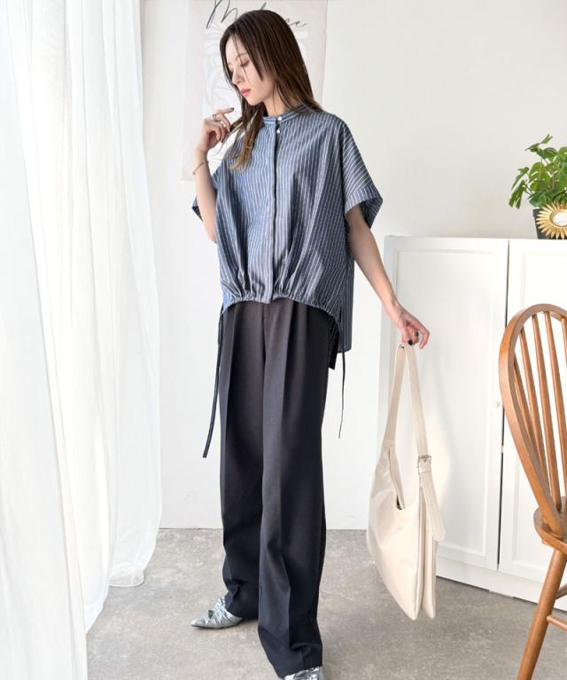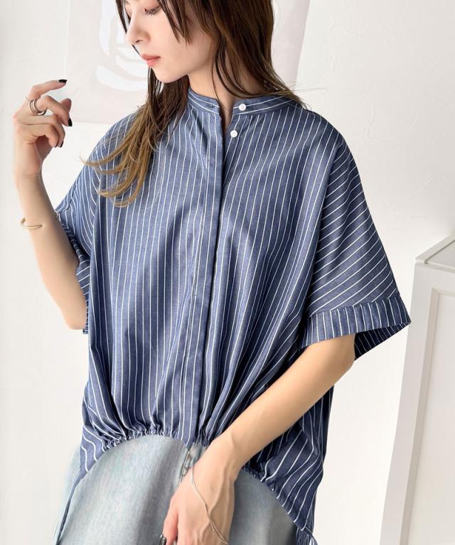 クラシカルエルフ冬新作 トップス シャツ レディース 前 ドロスト オーバーサイズ 大人 抜け感 ミニマル 半袖 サイドスリット アソート サイドボタン バンドカラー 大きいサイズ 2025SS ce1110113