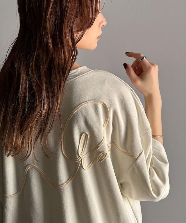 ★立体感のある刺繍がトレンドムード。paeanバック ウェーブコード刺繍 BIG刺繍 オーバーサイズ スウェット トップス★