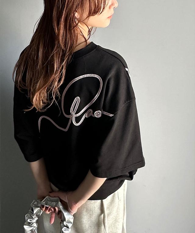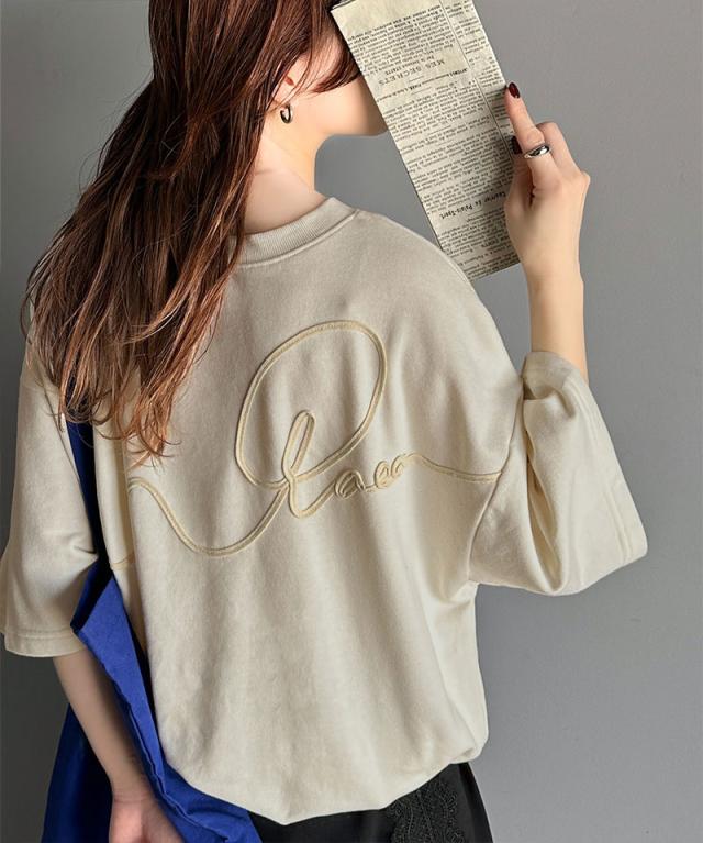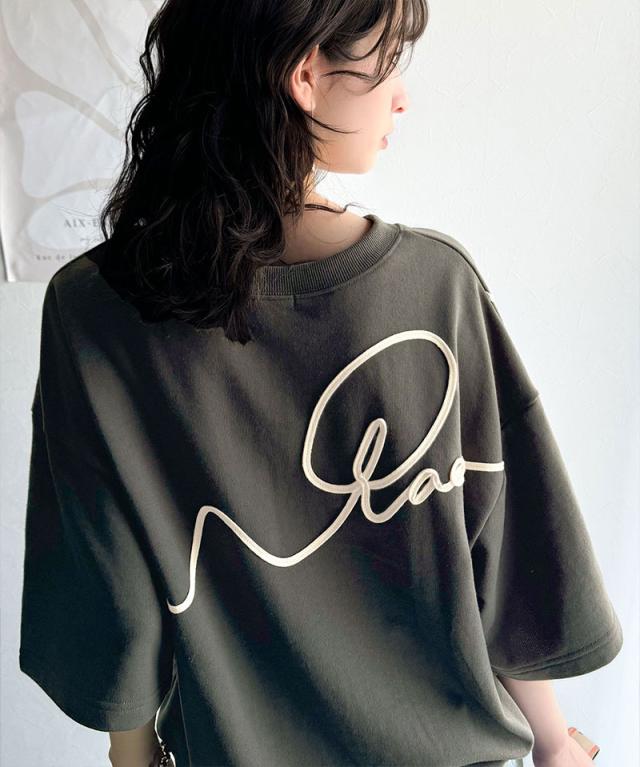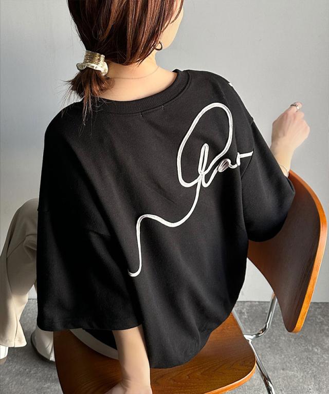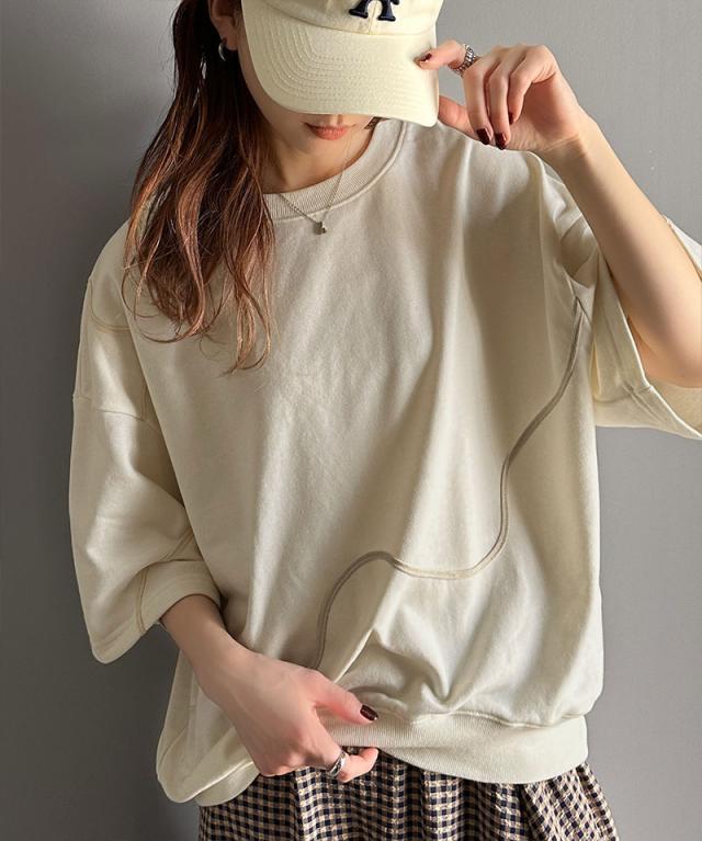 《メンズもレディースも着れちゃう"コード刺繍ハーフスリーブ裏毛スウェットTシャツ"》
