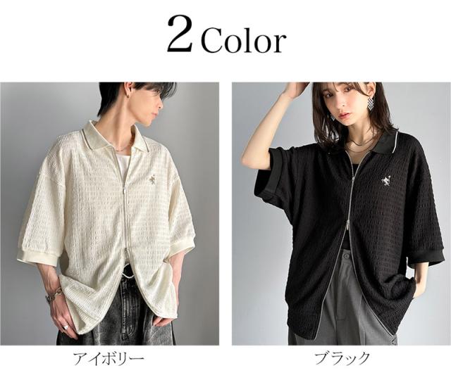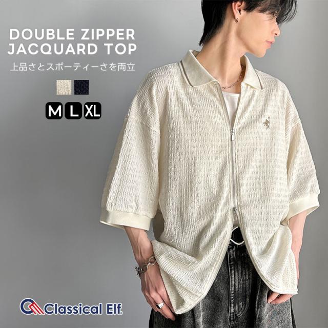 クラシカルエルフ冬新作 トップス カットソー メンズ ポロ襟 ダブルファスナー ジャガードトップス 半袖 スポーティ 男女兼用 ユニセックス レディース 上品 トレンド カジュアル ワンポイント刺繍 ダブルジップ ゆとり 大きいサイズ 2025ss cm1010400