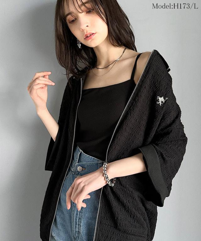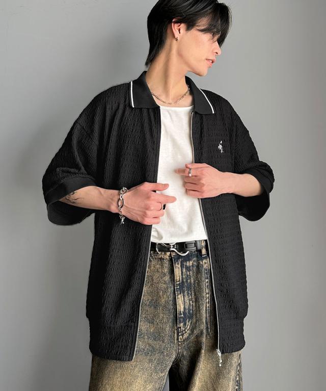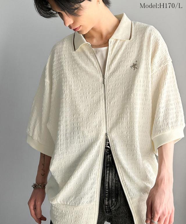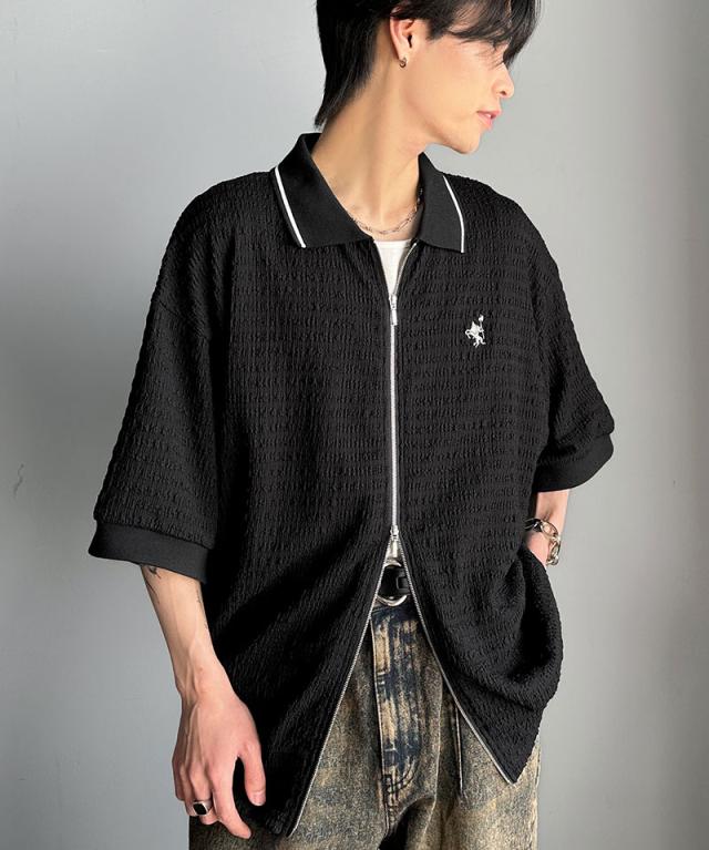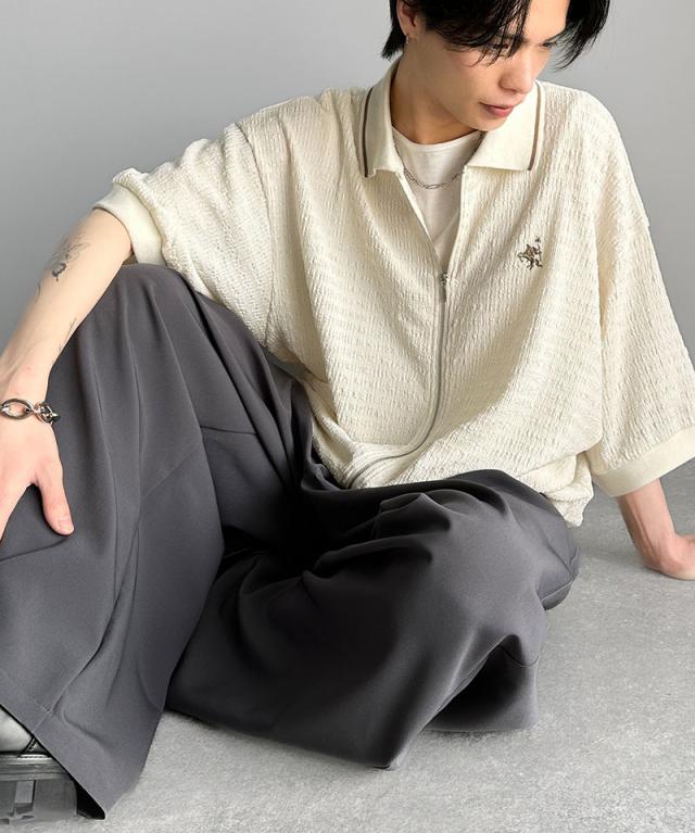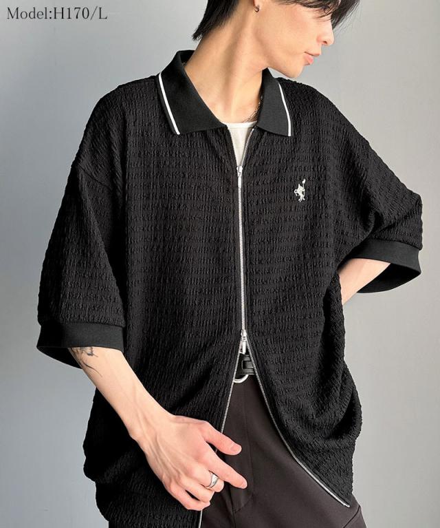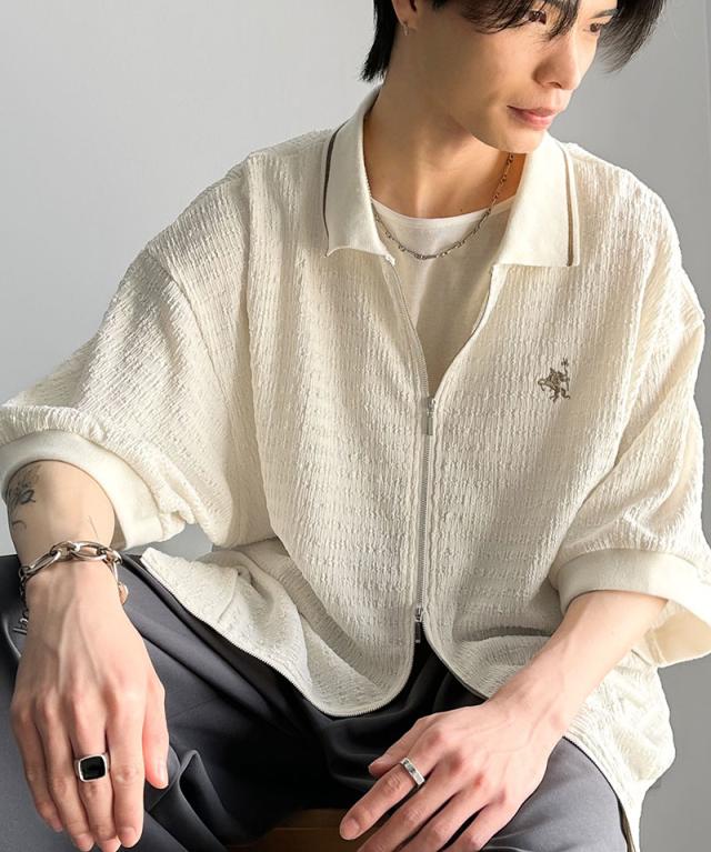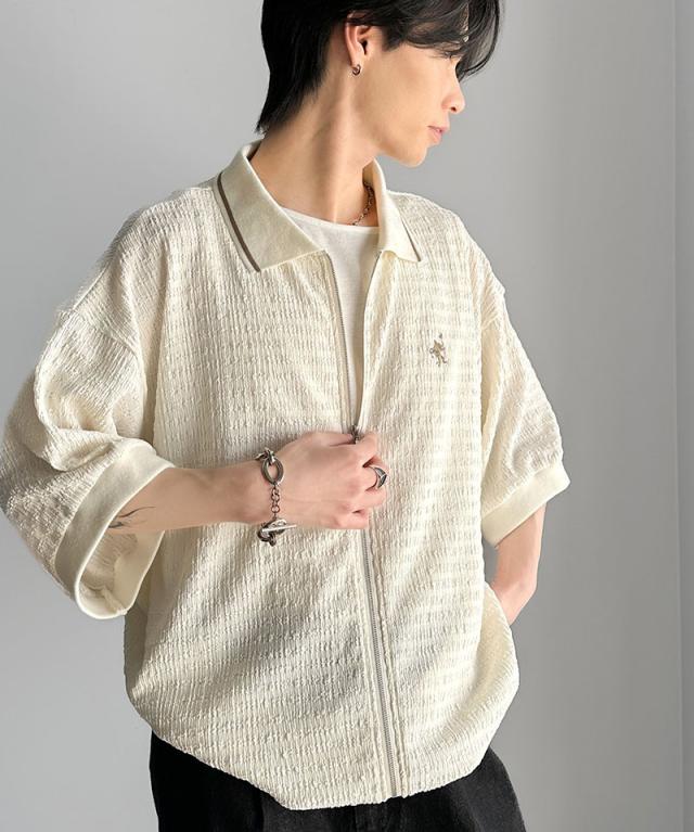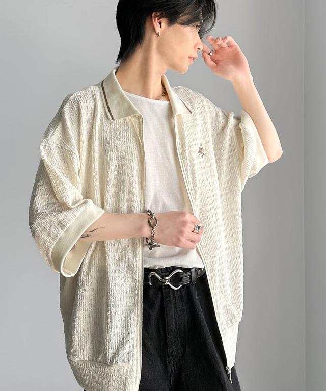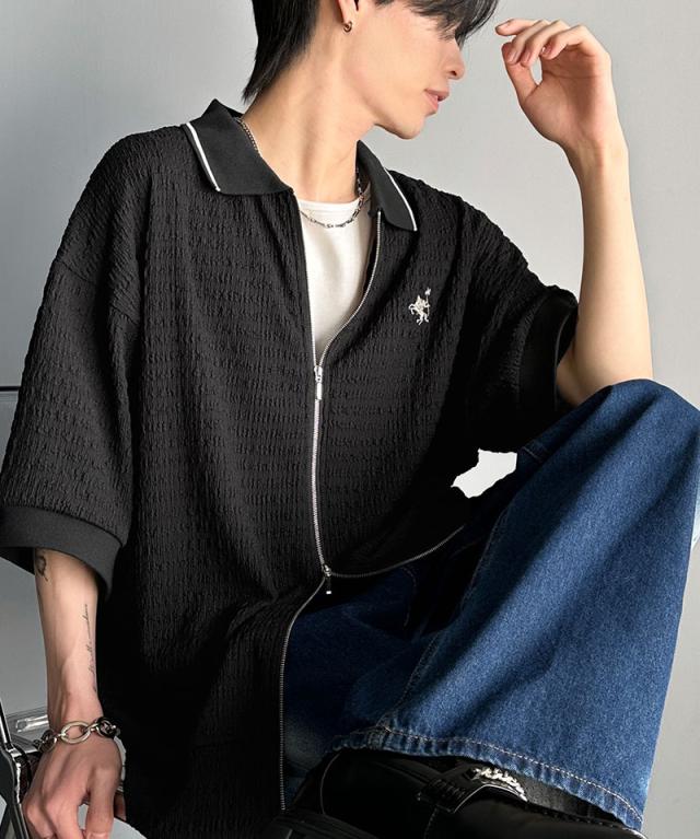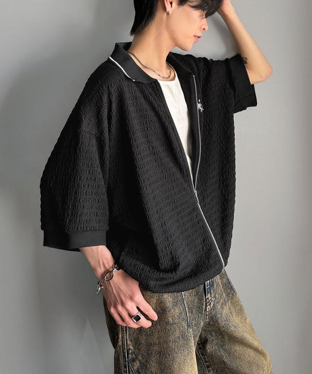 ★抜け感叶える大人の上品スポーティ。ポロ襟ダブルファスナージャガードトップス(半袖)★