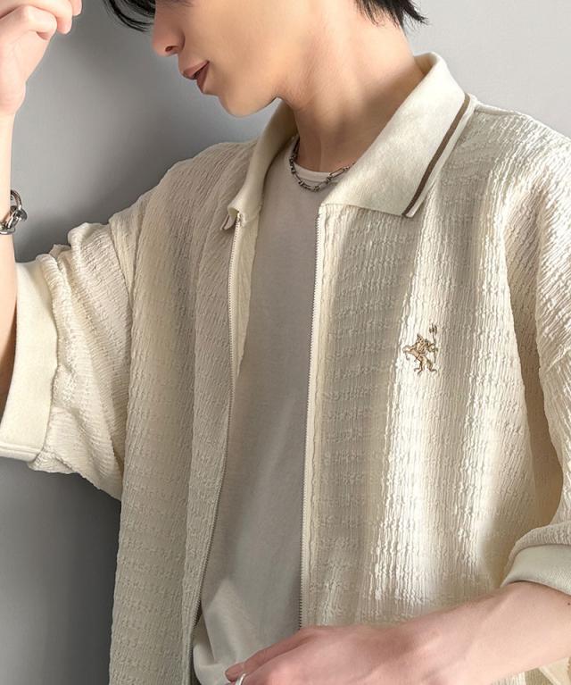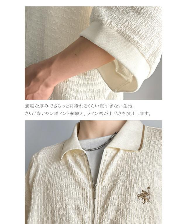 胸元のワンポイント刺繍と、ポロ襟のラインが高級感を演出◎