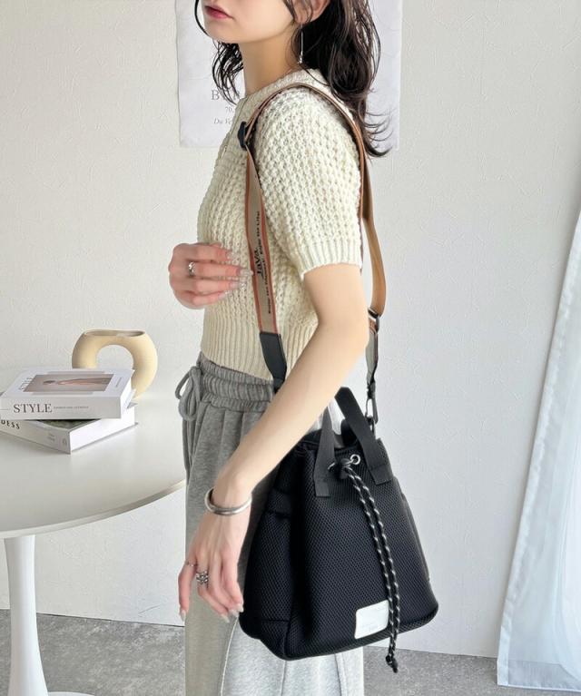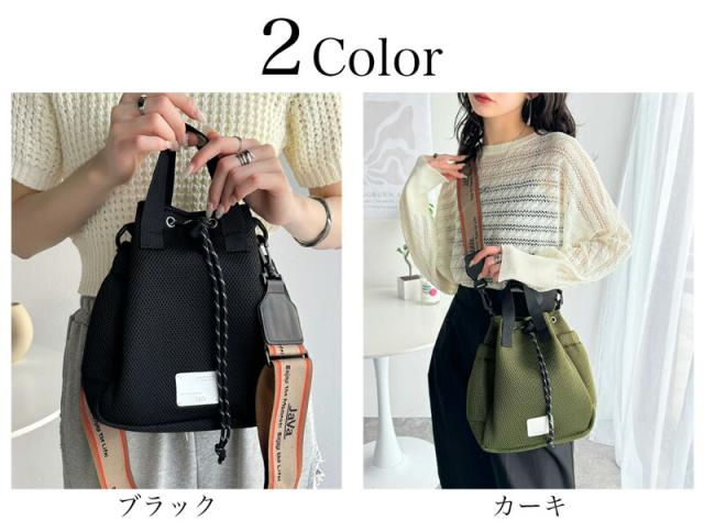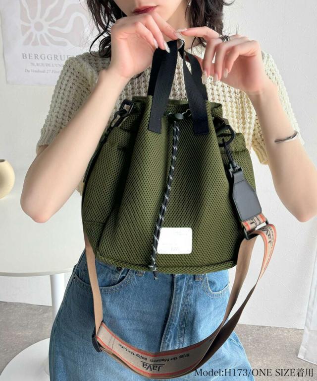 ★《Javaジャバコラボ》スタイリッシュで機能的。メッシュ素材ジャガードテープ2WAY巾着バッグ★