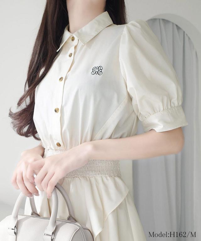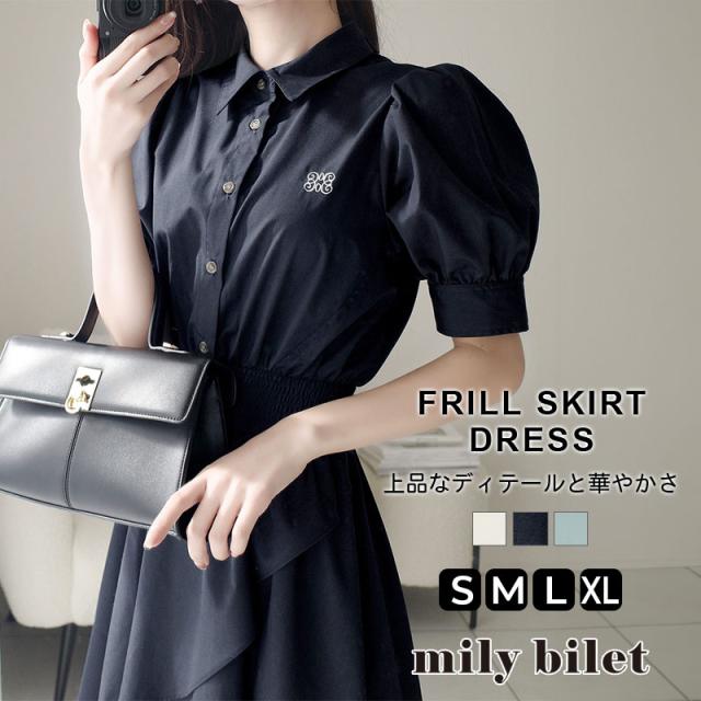 クラシカルエルフ春新作 mily bilet ワンピース レディース フリルスカート シャツワンピース 胸刺繍 上品 華やか 可愛らしい ワンポイント刺? 特別な日 デイリーユ デート 優雅 フェミニン 快適 肌に優しい 大きいサイズ 2026ss mi1019080