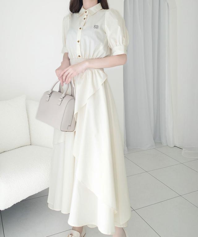 ★【mily bilet】上品なディテールと華やかさ。胸刺繍フリルスカートワンピース★