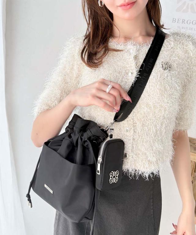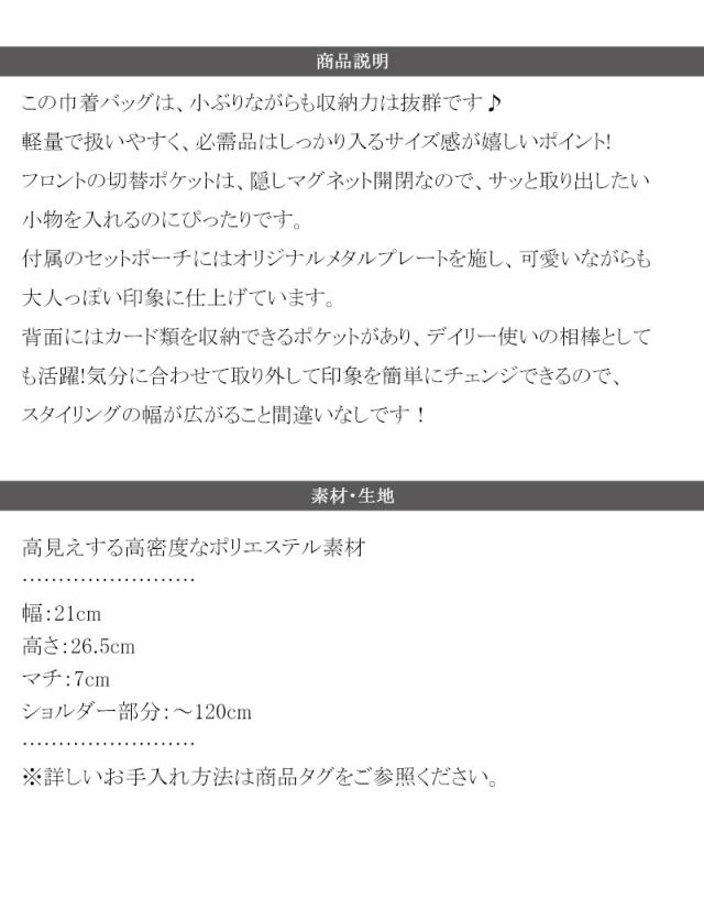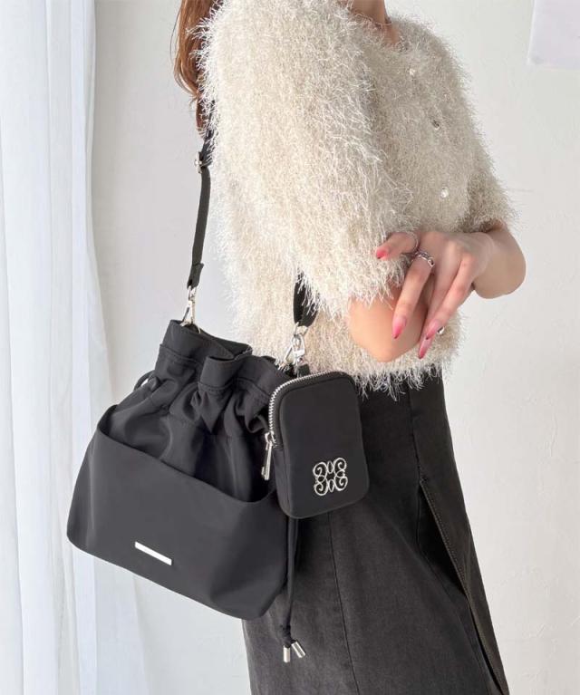 ★【mily bilet】程よい光沢感が大人可愛い☆ジャガードテープ使いミニポーチ付き巾着2WAYショルダーバッグ★