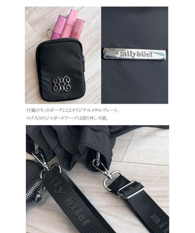 クラシカルエルフ冬新作 mily bilet レディースバッグ ハンドバッグ レディース ≪mily bilet≫ジャガードテープ使いミニポーチ付き巾着バッグ 2WAY セットポーチ付き巾着バッグ ロゴ入りジャガードテープ 外ポケット 大きいサイズ 2025SS mi1159053