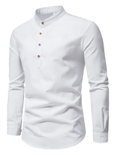 春と秋のメンズピュアコットンソリッドカラーシャツ、エレガントな長袖スタンドカラーシャツ、スリムフィットメンズシャツ