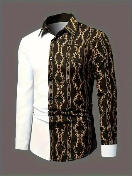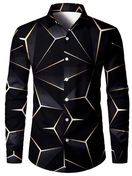 メンズ 3D テクスチャプリントカジュアルシャツボタン長袖秋多用途ラペル高級ファッション長袖シャツパーティードレス