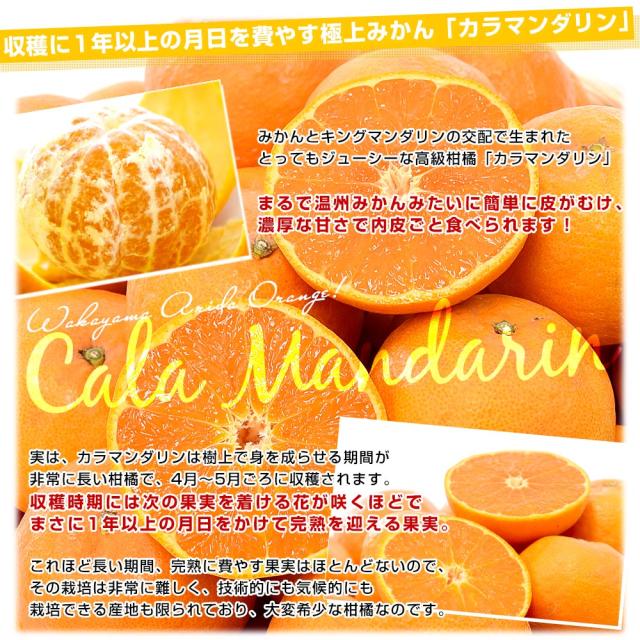 みかんとキングマンダリンの交配で生まれた、とってもジューシーな高級柑橘「カラマンダリン」。収穫に1年以上の月日を費やす極上柑橘!まるで温州みかんみたいに簡単に皮がむけ、内皮ごと食べられます。味わいはとっても濃厚で甘み豊か!厳選された青秀品をお届けいたします。