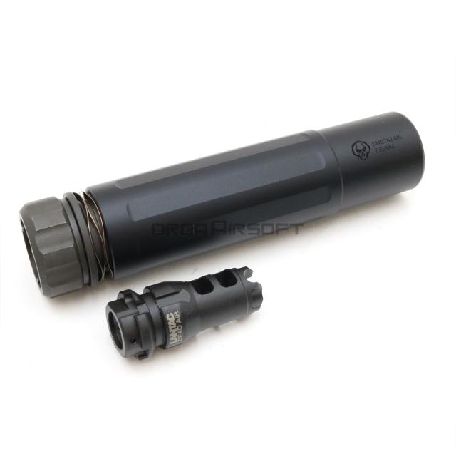 DEAD AIR SANDMAN-S MILサイレンサーを再現したIRON AIRSOFT製レプリカ、アルマイト・ブラックカラーです。スチール製のLANTAC Dragon KeyMo Wolfmanタイプ フラッシュハイダーがセットとなったバージョンとなります。