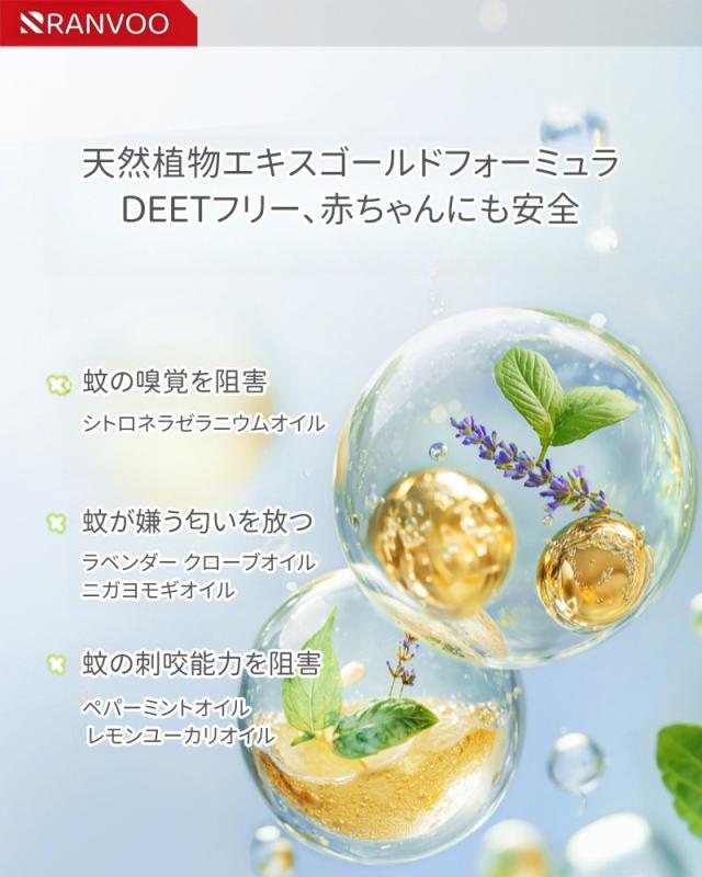 ☆検証報告書などの安全認証を取得済み。植物から抽出された植物精油は無毒無臭で、ディートが入っていなくて、安全健康的な蚊忌避の天然成分ですので、子供から赤ちゃんまでは安心にご利用いただけます。