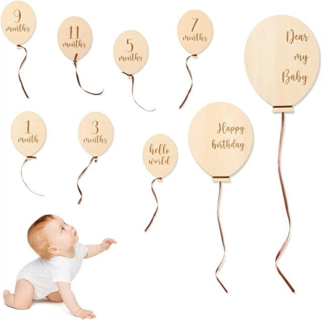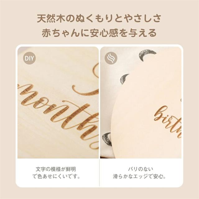 月齢フォト 木製 レターバナー ベビーマンスリーカッド ニューボーンフォト 記念日フォト ウッドレター 月齢カード 成長記録 百日祝い 出産祝い 1歳 100日 誕生日 パーティー 飾り付け 長持ち 9枚入り 天然木製 再利用可能 撮影用 寝相アート