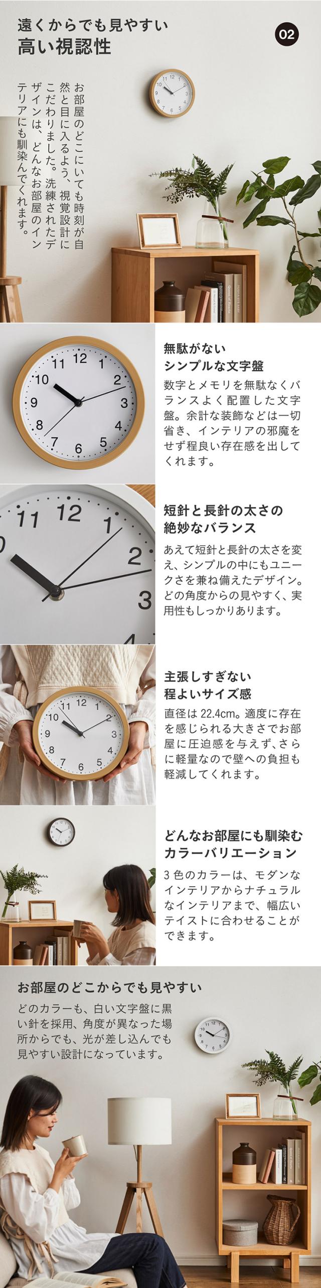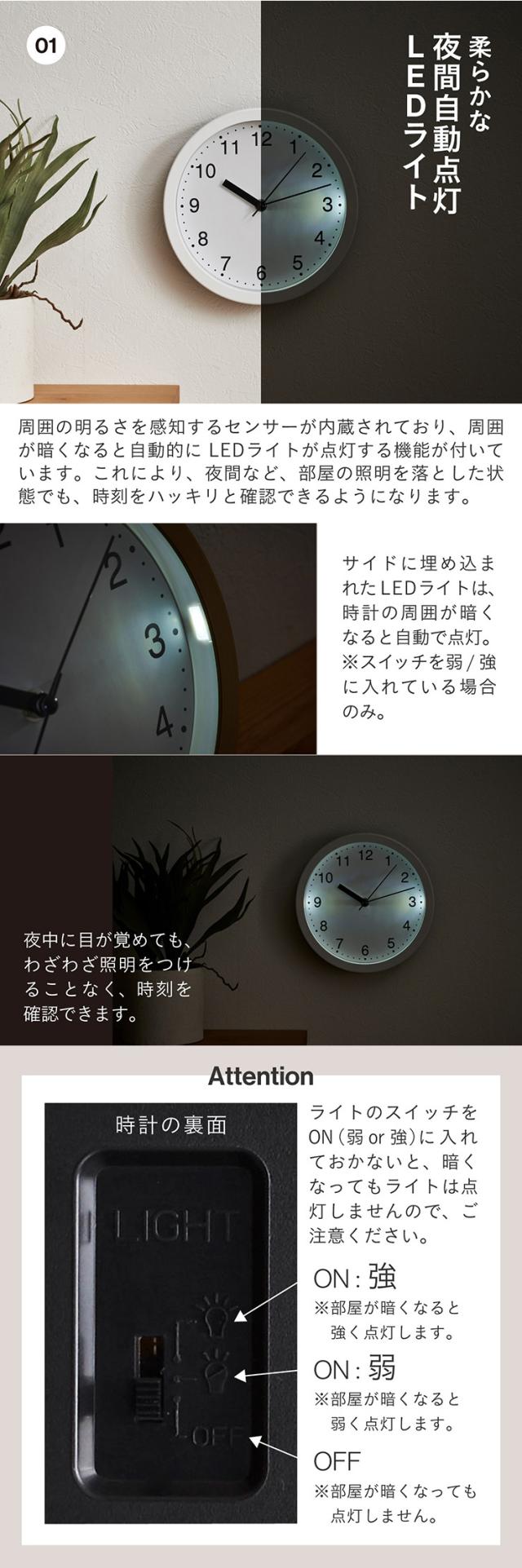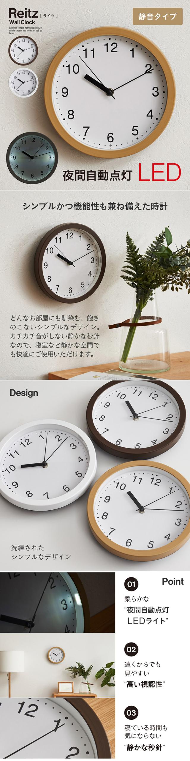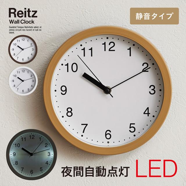 【夜間自動点灯LED】時計 掛け時計 静音 直径22cm Reitz(ライツ) 3色対応 壁掛時計 アナログ時計 ウォールクロック おしゃれ 置時計 シンプル 円形 電池式 ダイニング 子供部屋 一人暮らし 新生活