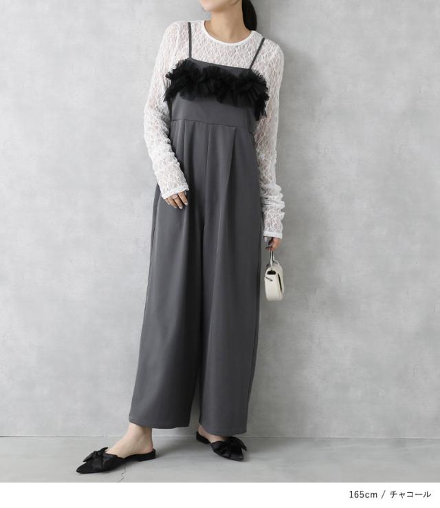 サロペット レディース オールインワン ロング丈 パンツ サロペ キャミ チュール ストライプ フリル 春 夏 【TP】 ボトムス キャミサロペット オーバーオール 調節できる 調整可能 ストライプ柄 無地 ドッキング レイヤード 重ね着 ポケット カジュアル シンプル ナチュラル フェミニン 可愛い系 大人女子 大人可愛い お洒落可愛い 大人カジュアル オフィスカジュアル 上品 きれいめ かっこいい ゆったり ゆる 楽ちん ストレスフリー 動きやすい Sサイズ Mサイズ Lサイズ LLサイズ 3Lサイズ XLサイズ フリーサイズ ぽっちゃり 体型カバー 大きいサイズ プラスサイズ 10代 20代 30代 40代 50代 60代 女子会 オフィス 通勤 通学 お買い物 お出掛け 旅行 リゾート おしゃれ お洒落 トレンド 流行 パーティー 二次会 osharewalker オシャレウォーカー おしゃれうぉーかー チャコールグレー チャコール ブラック 黒[ID]11dn0mk[チュールドッキングオールインワン]