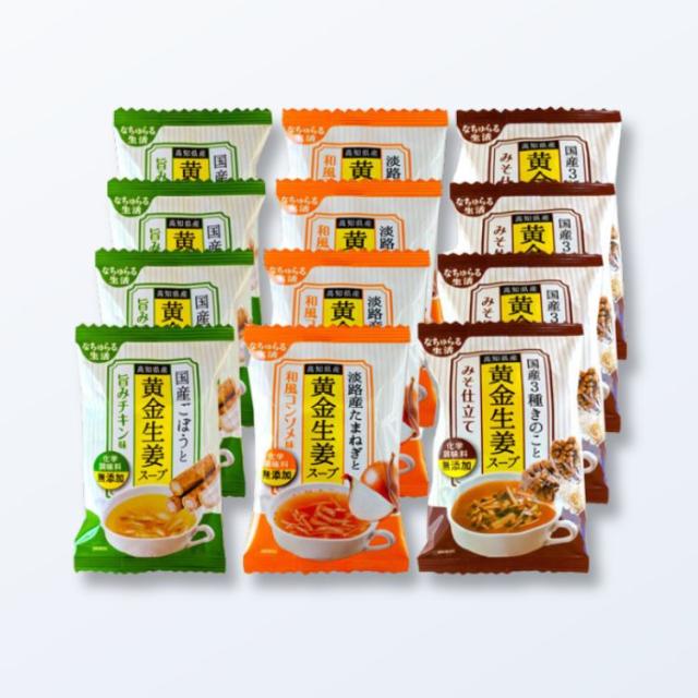 高知県産黄金生姜をベースに作った、3種の旨味たっぷりのスープのセットです。