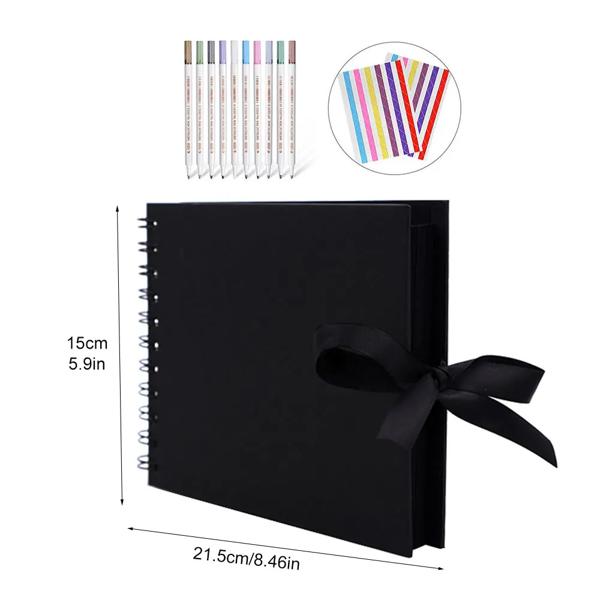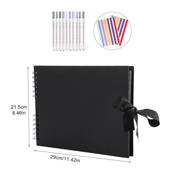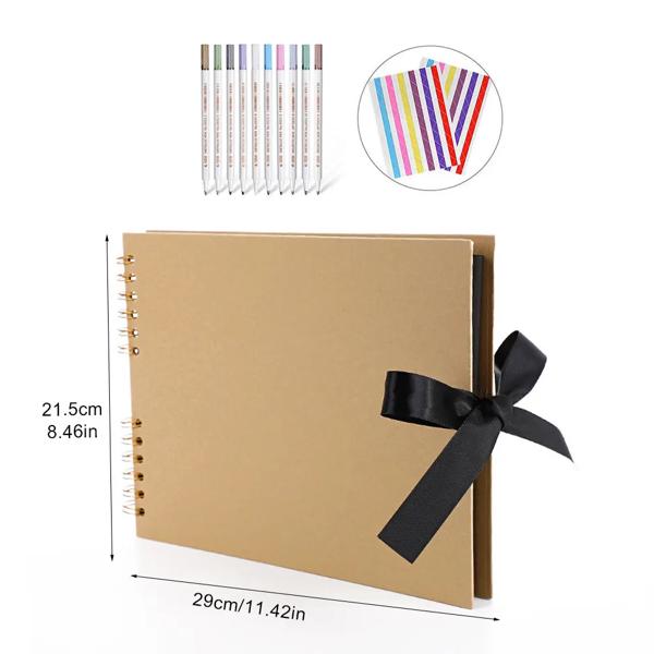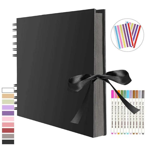 1.段ボールカバー、ハードカードカバーには絶妙な黒いリボンがあり、内側には高品質の厚手のクラフト紙の黒いページがあり、色あせせず、美しい瞬間を永遠に保ちます。