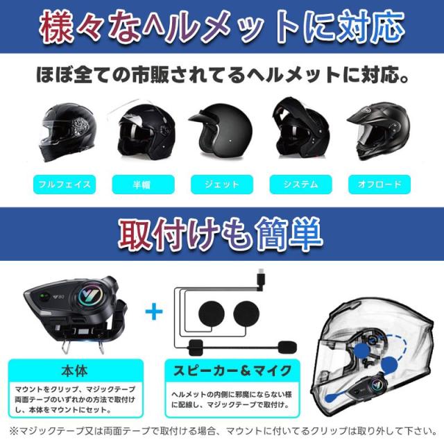 【IP67防水&長いバッテリー寿命】IP65防水技術を備えたヘルメット通信システムは、すべての気象条件を処理でき、-15°Fの温度でも機能します。また、1000 mAhのバッテリーを搭載し、通話時間最大25時間、音楽連続再生時間最大32時間、1週間以上のスタンバイ時間で提供します。市場に出回っているほとんどのオートバイ用ヘルメットと互換性があります。