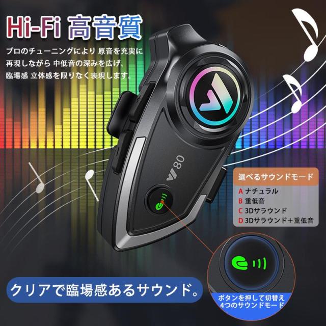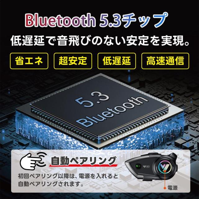 バイク インカム 最大2人同時通話 薄型 Bluetooth5.3 聴きトーク 自動復帰機能 バイク用インカム 高音質 無線機いんかむヘルメット用