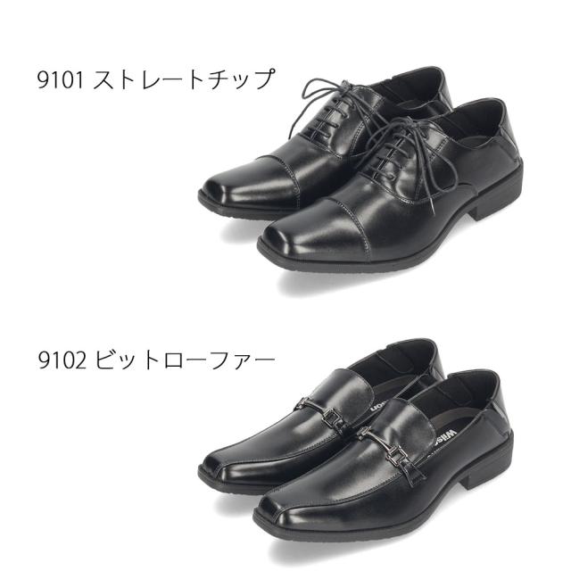 ビジネスシューズ メンズ かかとが踏める 2WAY 軽量 ブラック 黒 紳士靴 仕事 通勤 営業 ストレートチップ ビット スリッポン ウィルソン Wilson 9101 9102