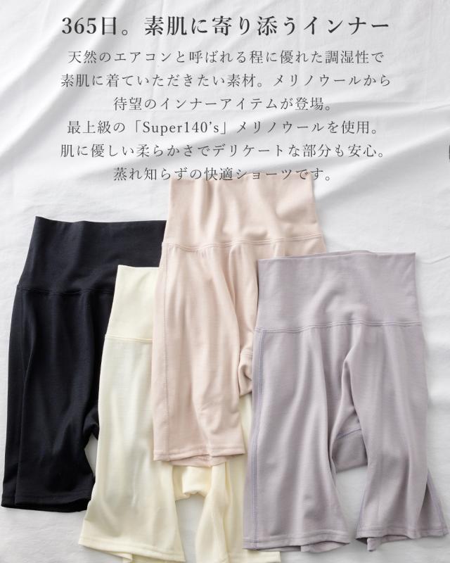 「天然のエアコン」と称される程に優れた調質性を持つメリノウールを使用したプレミアムショーツ。暑い時は涼しく、寒い時は暖かい快適さをキープ。抗菌・防臭効果に加え、素肌が喜ぶ極上のの肌心地は最高品質のメリノウールからの贈り物。蒸れやニオイも気にならず、デリケートゾーンにも優しい特別な一枚です。