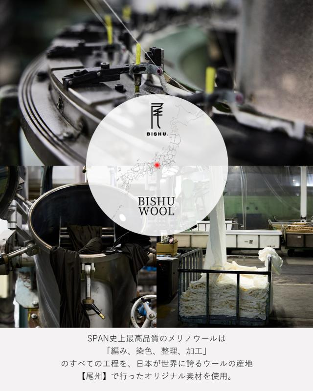 メリノウールは「1週間着続けても匂わない」と言われるほど高い消臭機能を持ち、尾州で編みたてられたウールですので、チクチク感も無く極上の着心地を提供します。
