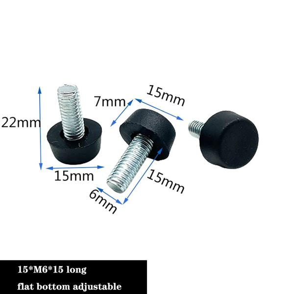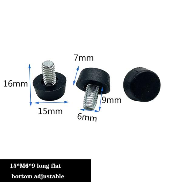 調整可能な弾性プラグ付きの黒いプラスチック製のテーブルネジ、足のパッド、ナット、釘、15 16 x m6