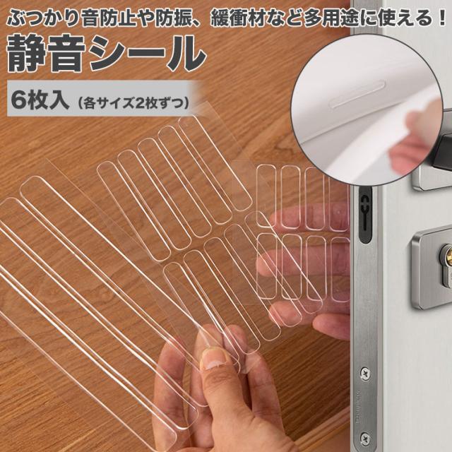 6枚セット 3サイズ 静音シール クリア クッションシール 衝撃吸収 ドア 傷防止 透明シール 家具保護 ドアノブ 緩衝材 家具用 シール 両面テープ 滑り止め PVC PR-SEION-6ST【メール便 送料無料】