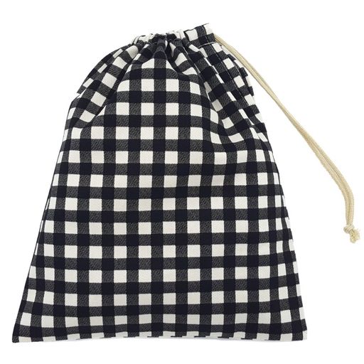 手作り工房FUJITA 給食袋 黒×ギンガムチェック柄 男の子 女の子 巾着袋 小 ハンドメイド 日本製 入園入学 通園通学