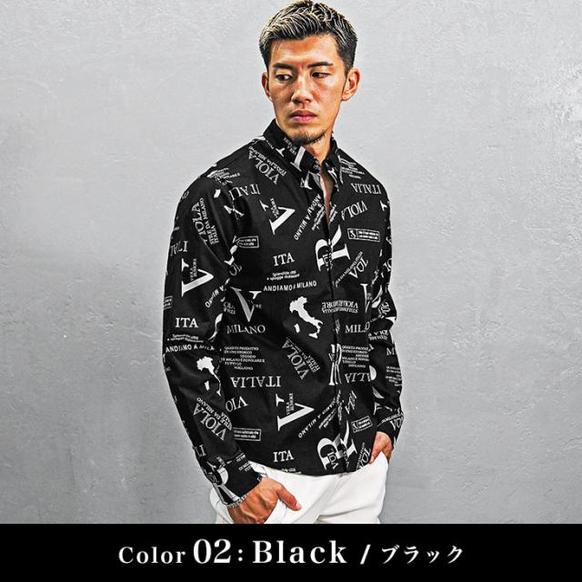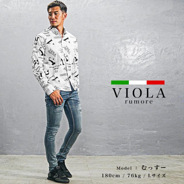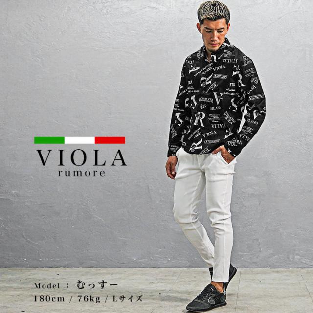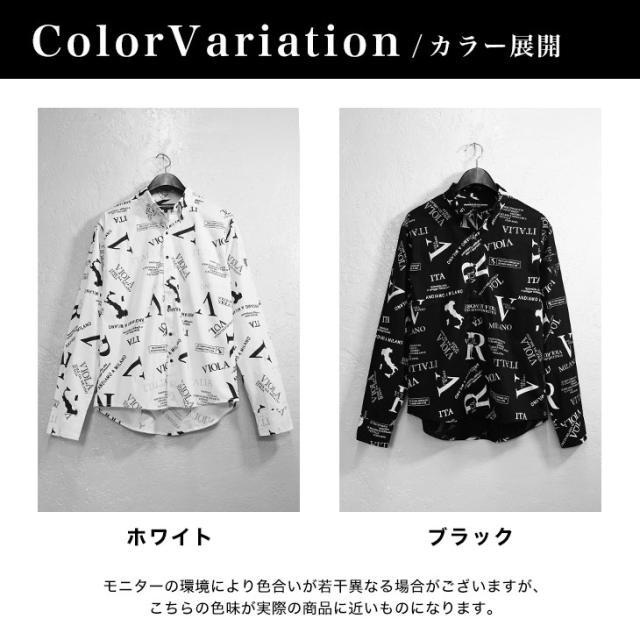 VIOLA rumore ヴィオラ 長袖シャツ メンズ 総柄 シャツ メンズ 長袖 カジュアル 柄シャツ メンズ 長袖 ロゴ 白シャツ カジュアルシャツ 黒 白 ブラック ホワイト きれいめ 春 春服 春夏 メンズファッション ちょいワル お兄系 Y52122