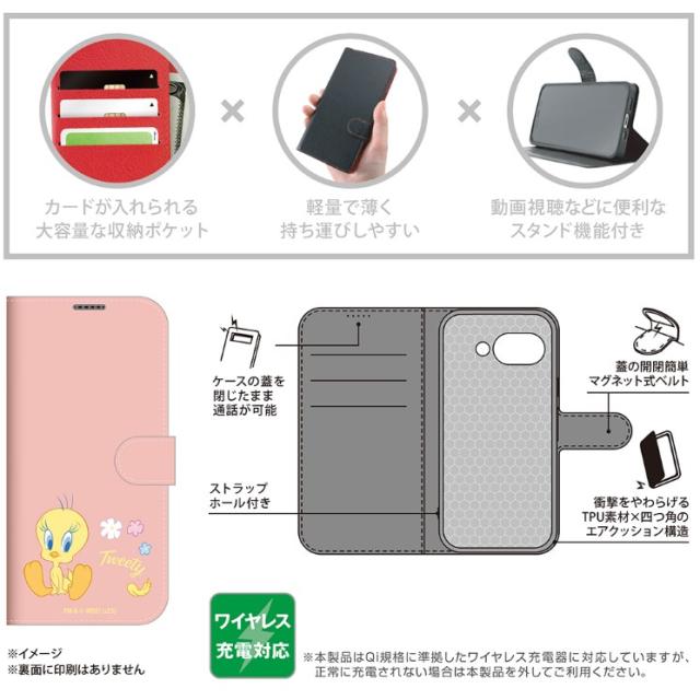 GooglePixel9a ケース 手帳型 トゥイーティー ルーニーテューンズ キャラクター グッズ 衝撃吸収 傷に強い 頑丈 丈夫 強い シンプル カード 収納 ポケット ストラップホール 付 スタンド 機能 マグネット ベルト Google Pixel 9a グーグル ピクセル IJ-WGP9AELC1P-LN7