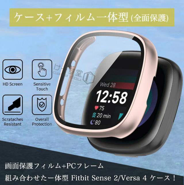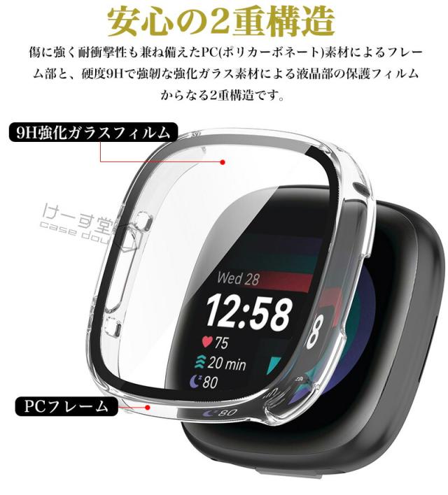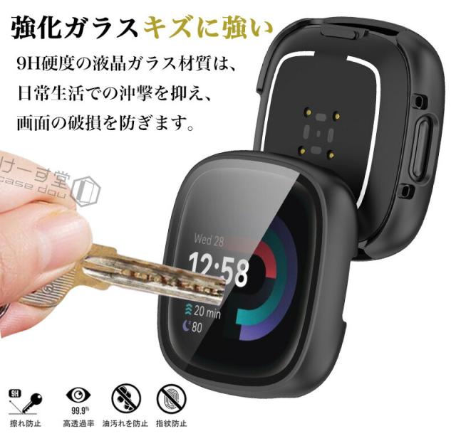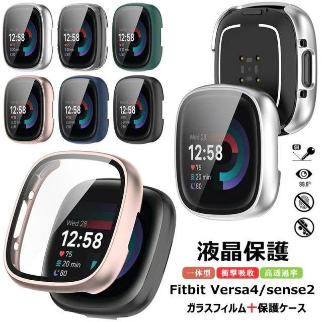 fitbit versa4 保護ケース ガラスフィルム フィットビット Fitbit Sense 2 カバー Fitbit Sense2 ケース 耐衝撃 fitbit versa 4 保護カバー クリア 強化ガラス Fitbit versa4ケース 全面保護 ハード 液晶保護 フィルム 液晶フィルム 傷防止 高透過率 液晶面強化ガラス