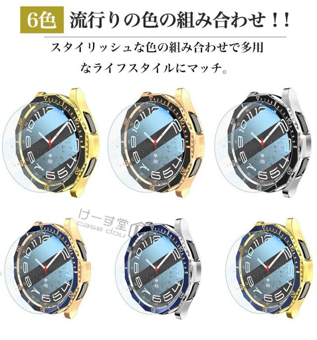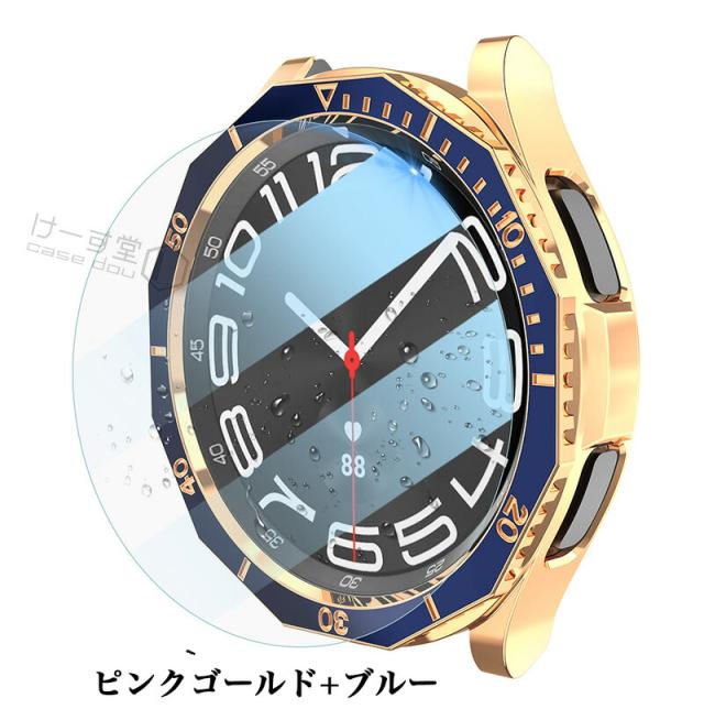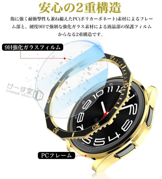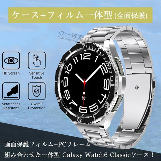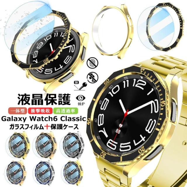 Galaxy Watch 6 Classic 43mm 47mm ケース 一体型 メッキ加工 R950 R960 ギャラクシーウォッチ6 ケース ガラスフィルム クリア Galaxy Watch6 Classic 47 mm 43 mm スマートウォッチ 保護カバー PCフレーム カバー 強化ガラス 全面 液晶保護 フィルム 耐衝撃 ハード 傷防止