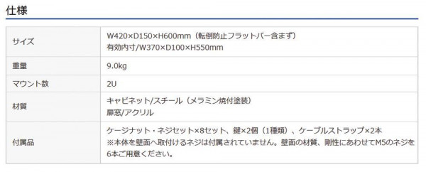 | 小規模LAN用機器収納用19インチマウントボックス。2U。設置方法は、床面・壁面共に可能。 |