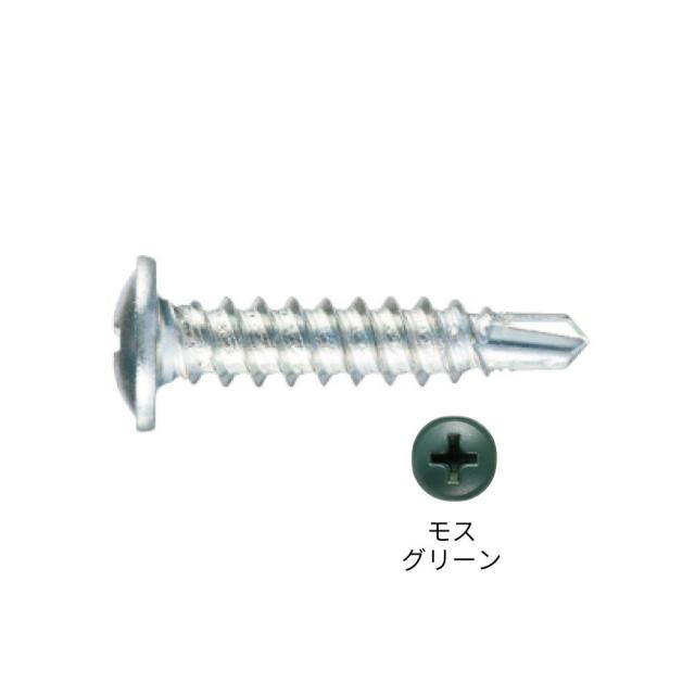 先端ドリル形状でバリが出にくく、頭部径8.0mmで目立ちにくいビス。頭部着色はモスグリーン。