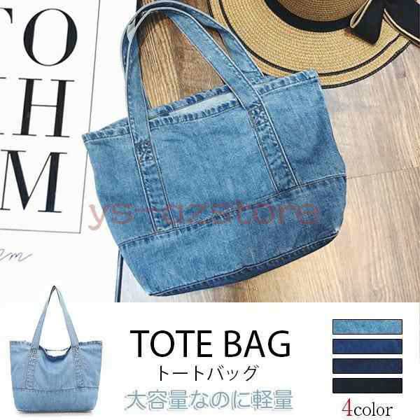 トートバッグ レディース メンズ デニム調 大容量 軽量 シンプル 通勤 通学 マザーズバッグ のみ2