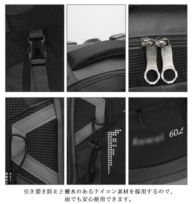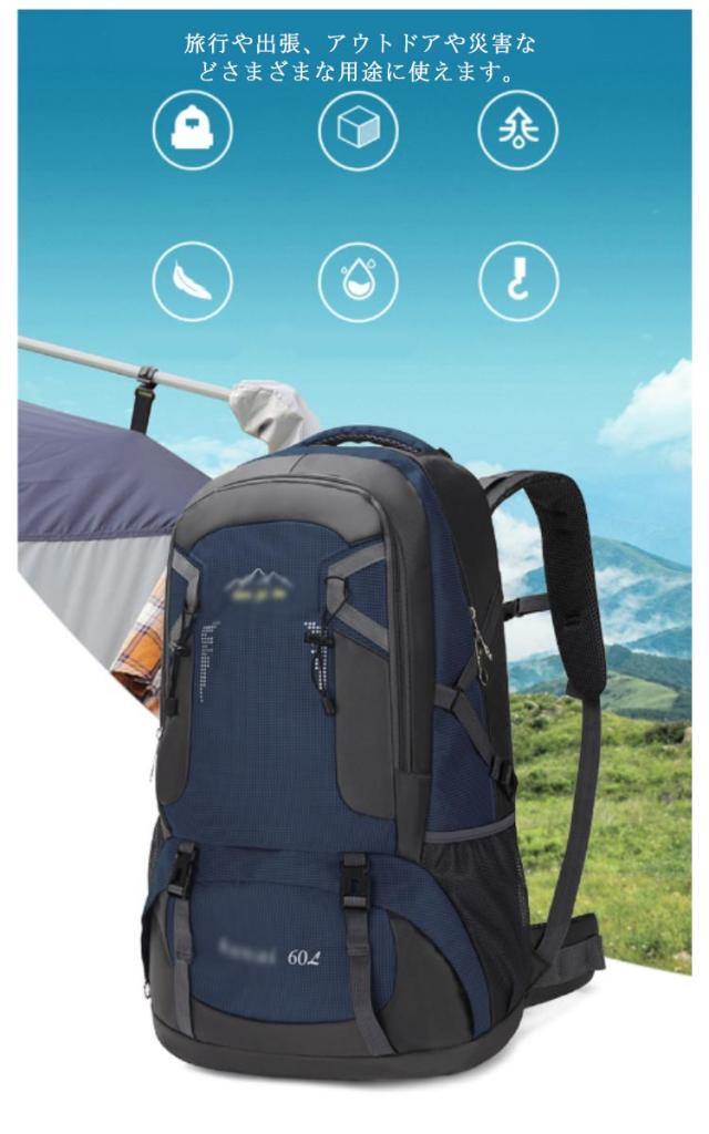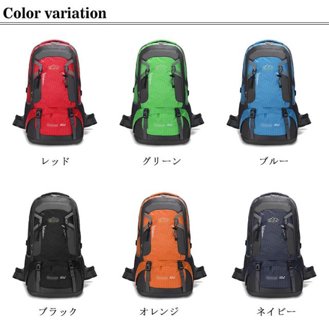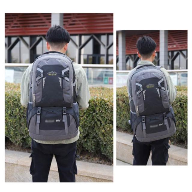 | アウトドアを楽しめるリュックサックです。 収納力抜群、PC、Pad、A4サイズの書類や着替え、サングラス、帽子など必要なアイテムを、まとめて収納。 肩のベルト部分には厚手のクッション材が使われているので、耐荷重性も抜群です。 60Lの大容量があるので、様々な物の収納に便利です。 引き裂き防止と撥水のあるナイロン素材を採用するので、雨でも安心使用できます。 旅行や出張、アウトドアや災害などさまざまな用途に使えます。 | |