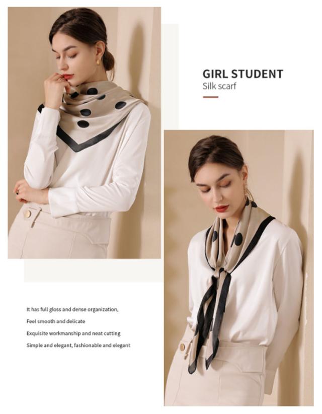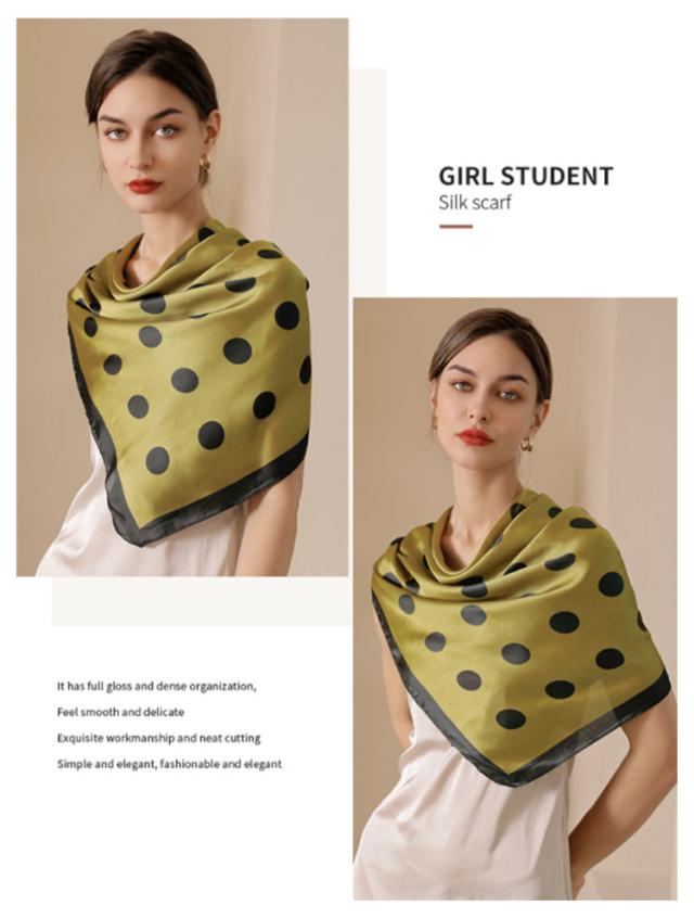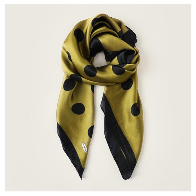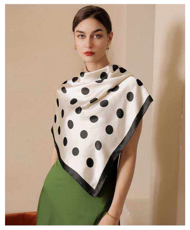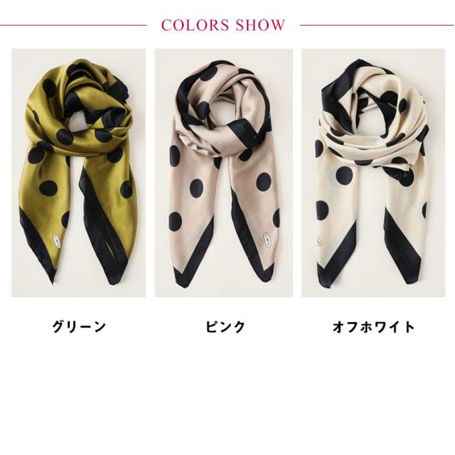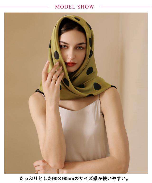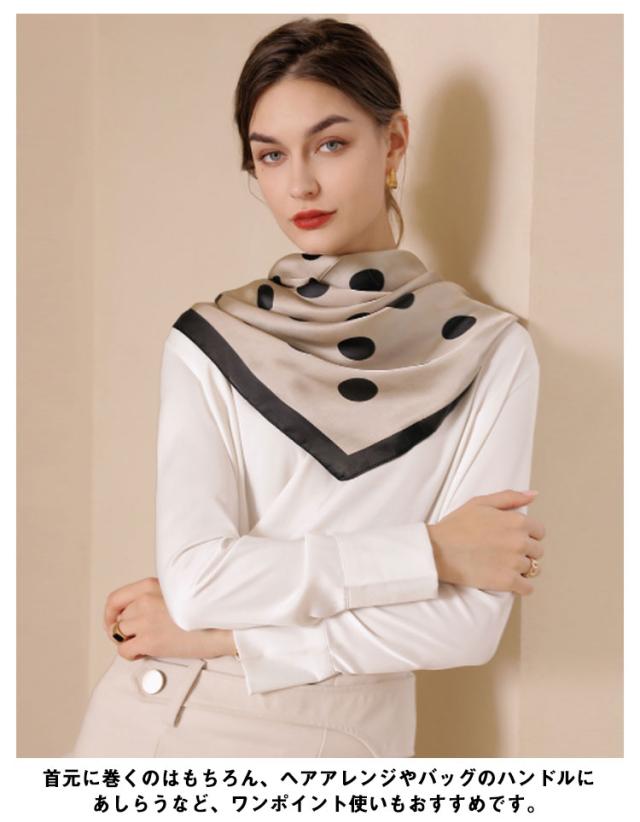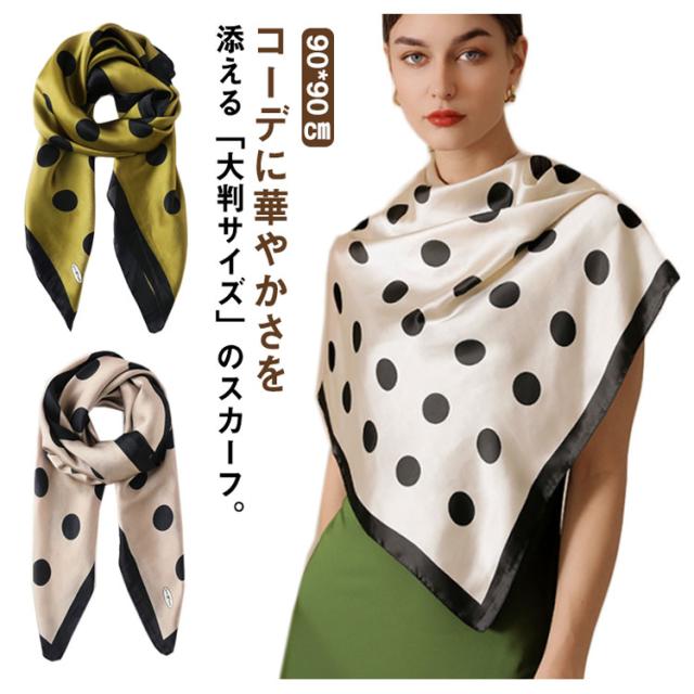 スカーフ シルクタッチ 90cm レディース ストール 大判スカーフ 巻き方 ドット柄 水玉柄 一重巻き ネクタイ結び 三角ドレープ巻き 春 夏