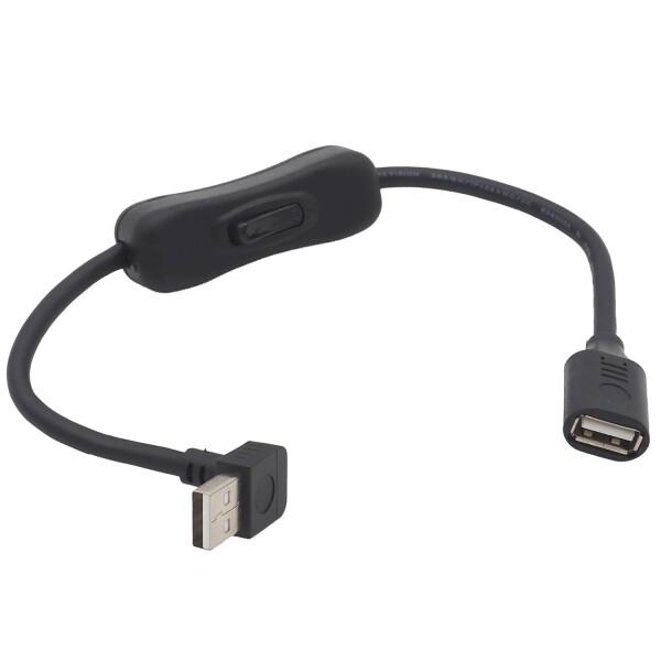 オーディオファン USB 延長ケーブル ON / OFF スイッチ付き L字 USB-A オス - メス データ通信対応 L字型A 30cm ブラック 1点