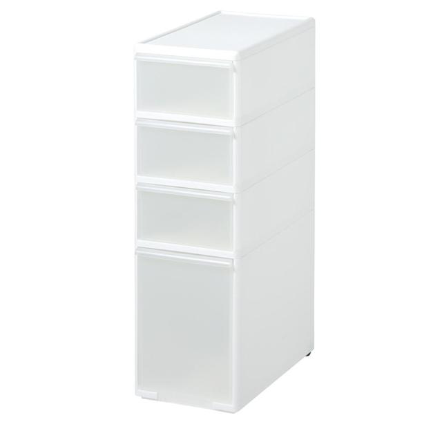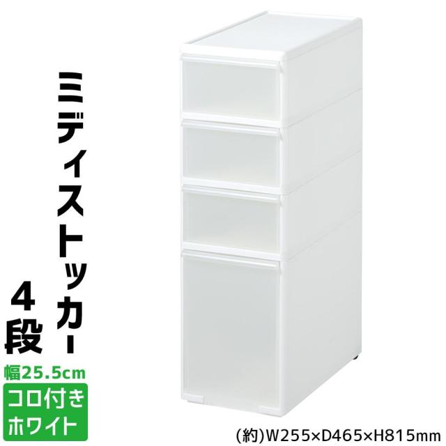 吉川国工業所 収納ストッカー スリムストレージ ミディストッカー 4段 幅25.5cm (コロ付き) ホワイト MS-103【メーカー直送】代引き・銀行振込前払い・同梱不可
