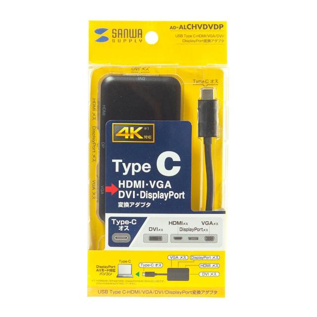 サンワサプライ USB Type C-HDMI/VGA/DVI/DisplayPort 変換アダプタ AD-ALCHVDVDP【メーカー直送】代引き・銀行振込前払い・同梱不可